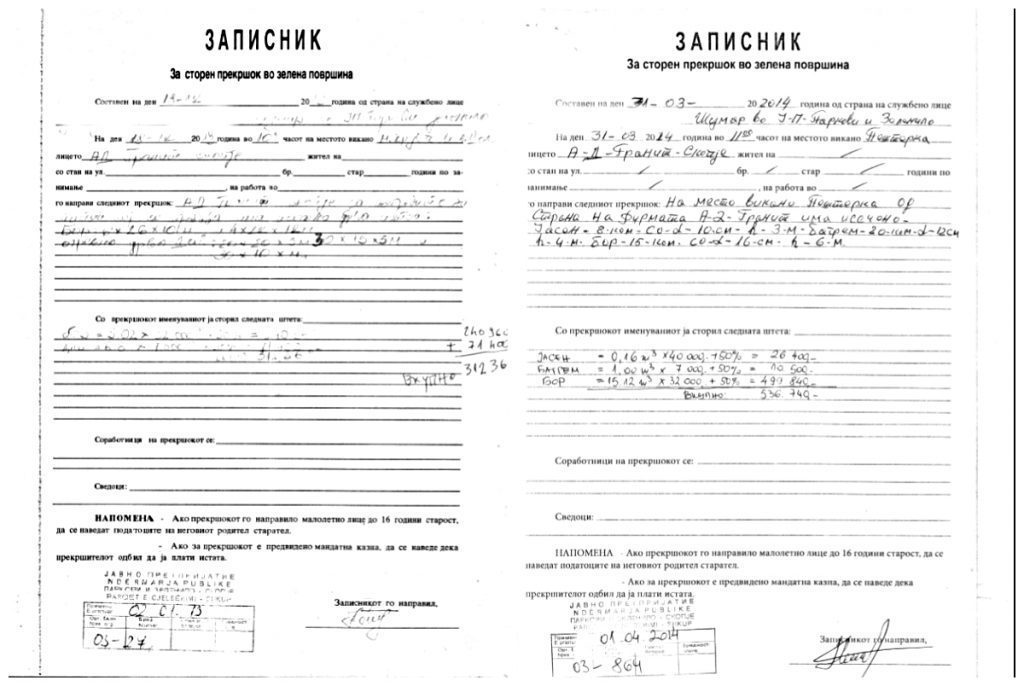 овие „записници за сторен прекршок во зелена површина“ до кои дојдовме,