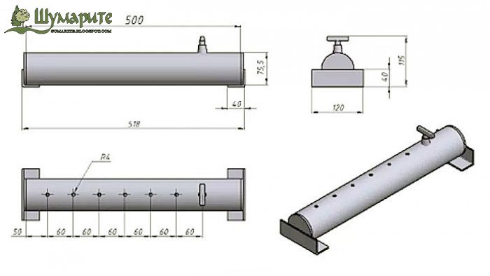 Тој изјавува дека не постојат строги критериуми за димензиите на користената цевка, бидејќи сè зависи од параметрите на шпоретот, или поточно количеството огревно дрво што може да се вметне во него. Потребно е да обрнете внимание на тоа дека треба да користите дебел метал за да не изгори. Исто така, не можете да направите неколку дупки, а уште повеќе да користите тенки бургии од 1 или 2 мм, бидејќи пареа под притисок не е шега. Ако, за време на тестирањето, “трупчето“под силен притисок од пареата која излегува започне да свири, тогаш дупките се мали, па затоа мора итно да се извади од ложиштето. Потоа потребно е да се издупчат дупки со поголем дијаметар. Но не треба да ги направите премногу големи, бидејќи пепелта ќе паѓа внатре и не е пожелно да се мие заварената цевка. Подобро е да имате повеќе мали дупки од неколку големи.