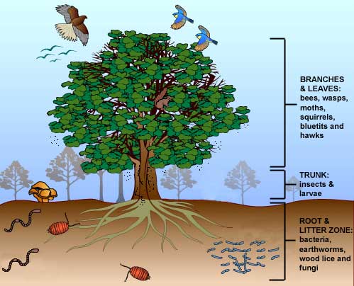 Шумата е еден голем екосистем кој е составен од поголем број на помали микроекосистеми во рамките на кои опстојуваат разни растителни и животински видови. Како еден од главните елементи на овие микросистеми се дрвјата, кои со нивната долговечност преставуваат главно живеалиште и скривалиште за разни видови на животни, инсекти и паразити.