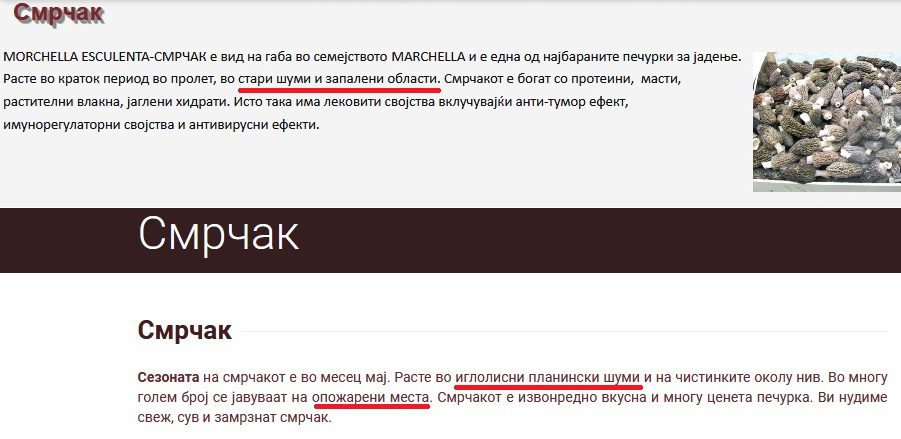 Фениксот се издигнува од пепелта во приказните, а смрчакот во стварноста. Кога ќе изгорат зимзелени шуми како таа во селото Требовље кај Македонски Брод, тоа создава поволни услови за следната година, по дождовите, да има богат род од печурката смрчак, која е една од највкусните и најскапите на пазарот. За гурманите деликатес, за собирачите одлична бизнис-можност, бидејќи откупната цена на оваа габа достигнува и по 1.000 денари за килограм.