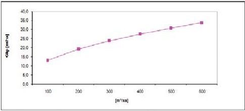 Добиените резултати графички се прикажани во графиконот 1. Од истиот се гледа дека со зголемување на користењето на дрвната маса се зголемува густината на шумската патна мрежа.